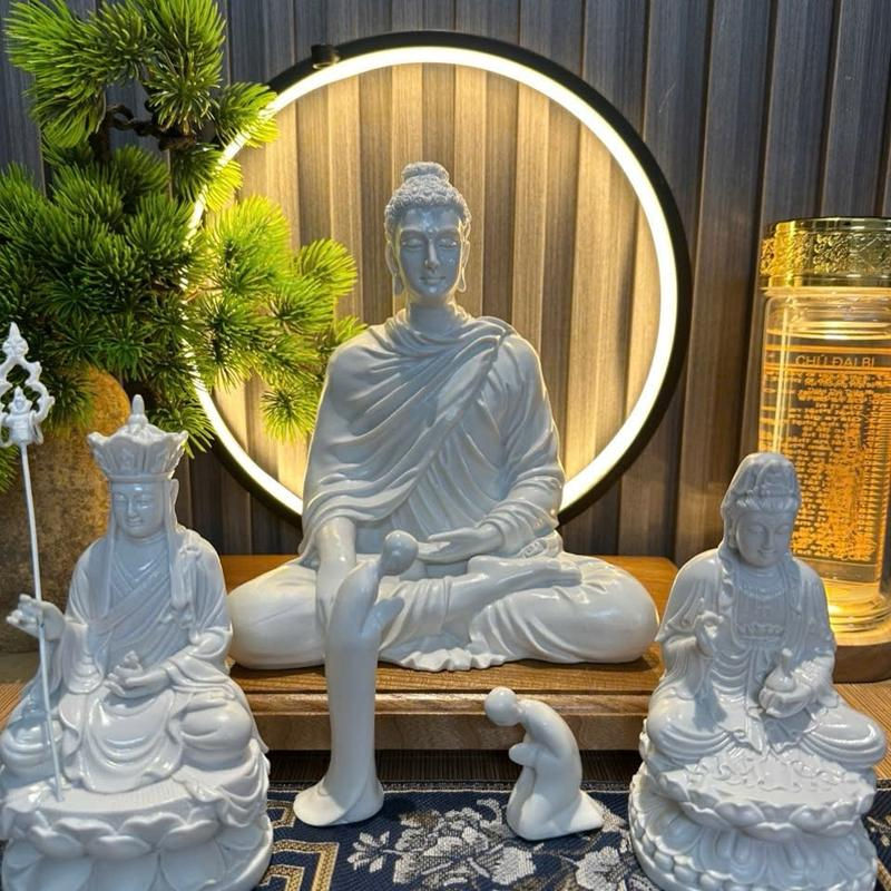 Bộ tượng Ta Bà Tam Thánh ngồi (đủ side) Decor Phòng Trang Trí Nhà, decor tu tập (bộ ba tượng không gồm đồ decor)